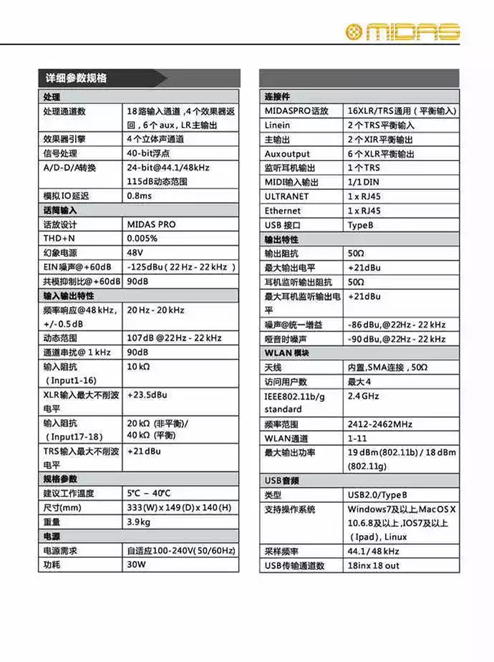 · 內置16個Midas經典話放· 2通道線路輸入