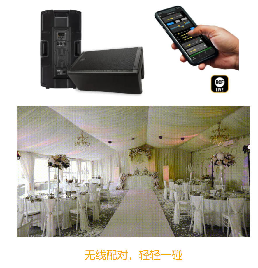 借助RCF超低音揚聲器的內部現成預設,音響係統可以完美校準,隻需幾個步驟即可開始運行。